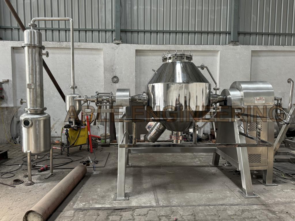 The Rotocone Vacuum Dryer (RCVD), also known as the Rota Cone Vacuum Dryer, is ideal for drying materials that cannot withstand high temperatures, are easily oxidized, are volatile and must be retrieved, and are natural irritants and poisons. Able Engineering roto-cone dryer with improved technology integrates during operation under vacuum. The rotocone dryer facilities enhanced drying efficiency, low-temperature operation, and economy for the process of total solvent recovery. It helps cGMP-based working by achieving optimum dust control while offering advantages of efficient charging and discharging of materials. The drying unit equipped with lump breakers, initially breaks large lumps and subsequently powders them (in a single cone). The rotary action of the dryer together with the mechanical action of the breaker cuts down drying time and gives a lump-free product.