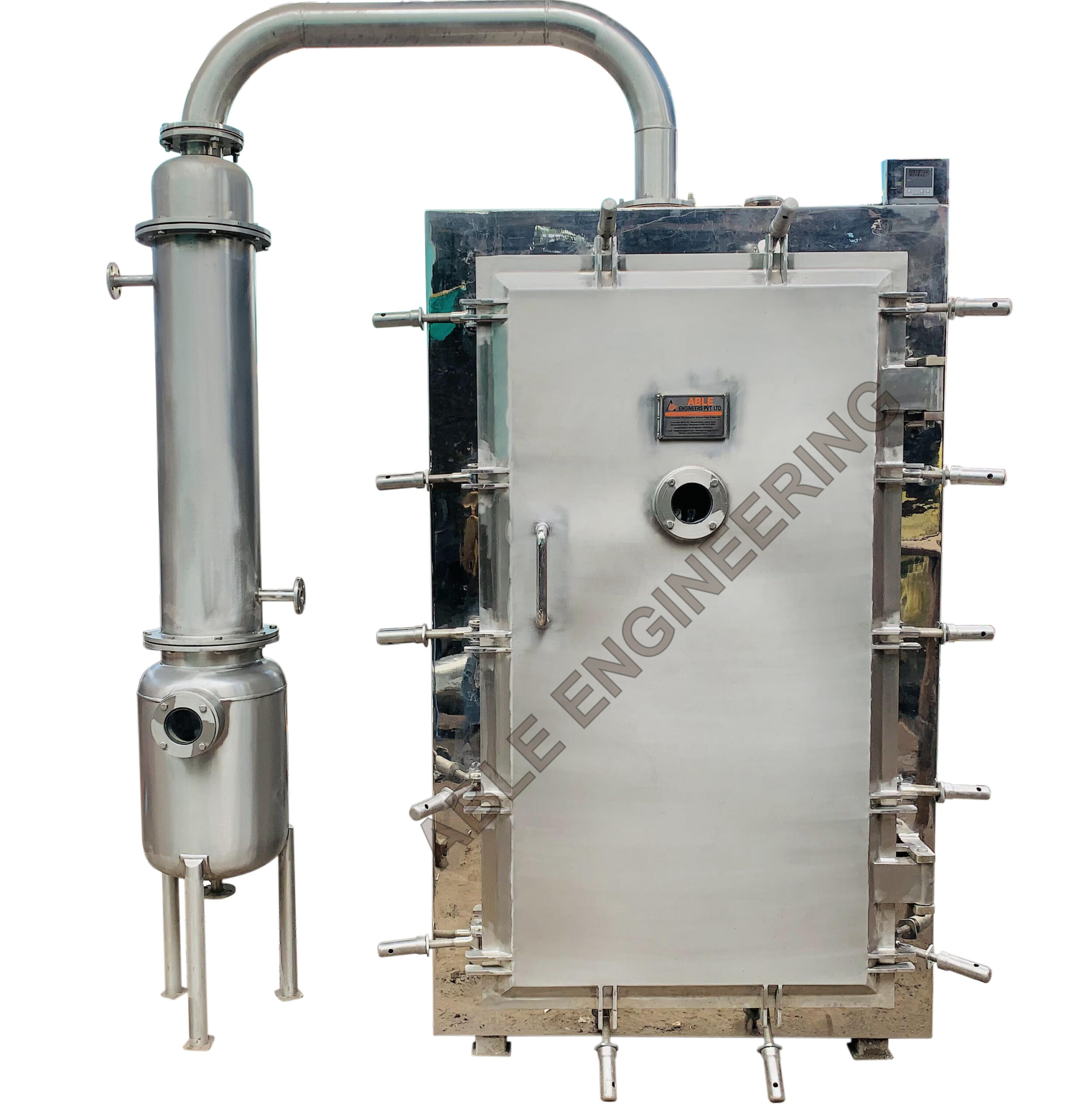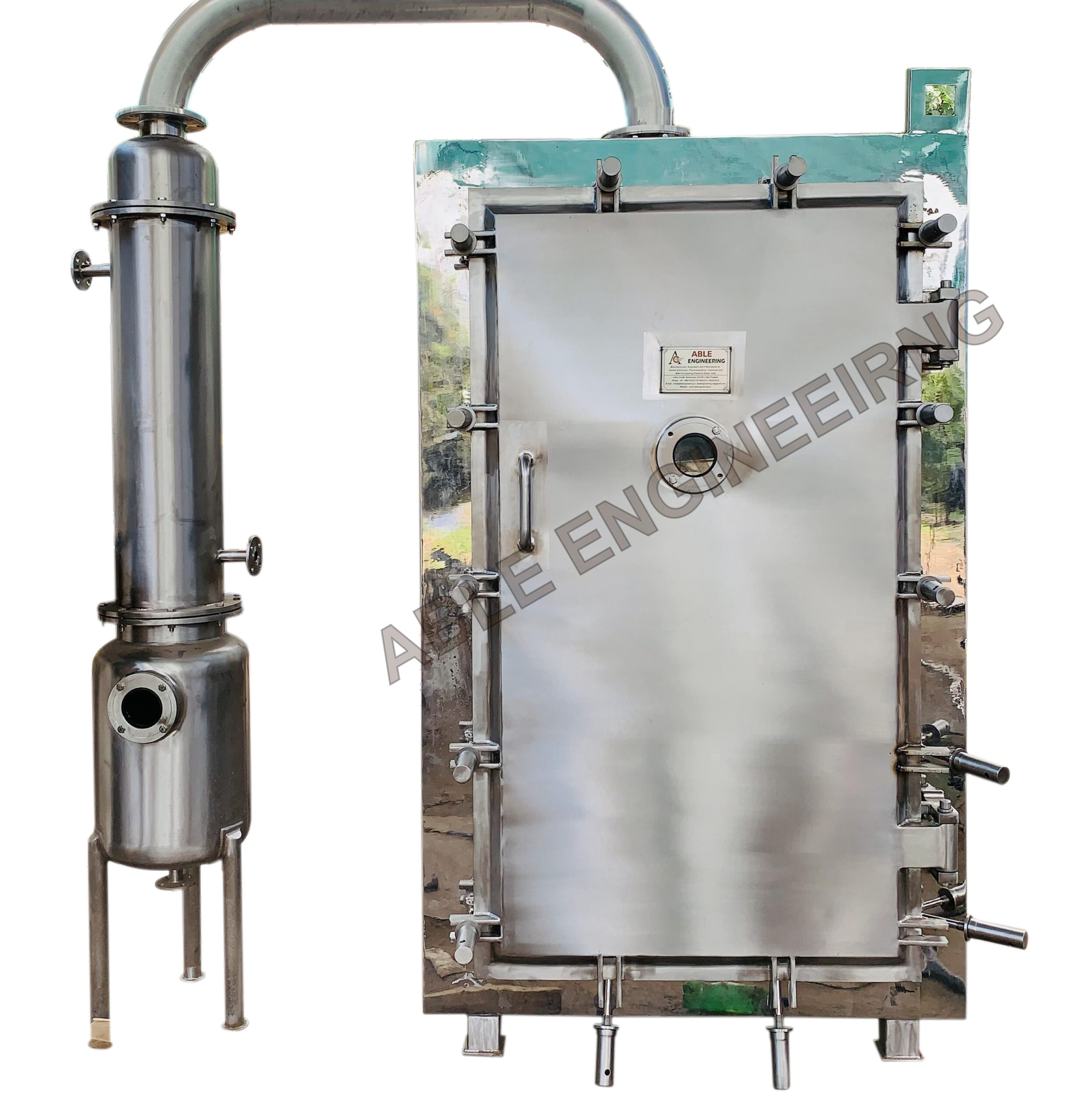 The Vacuum Tray Dryer (VTD) is suitable for drying thermally sensitive materials that are easily resolved, polymerized, or deteriorated at higher temperatures. It is widely used in Herbal Extraction Plants and Pharmaceutical Plants. Sterilization can be conducted before the drying process, during which no matter is allowed to enter the product. Able Engineers Private Limited manufactures the most qualitative Vacuum Tray Dryer, which is well known for its high quality and efficiency levels. This gamut of products is in high demand in the market for the heating and drying up of various items involved in the manufacturing processes of several industries.